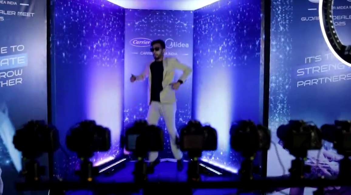 Bullet-time multi-camera capture creating dramatic 360Β° slow-motion branded event videos.