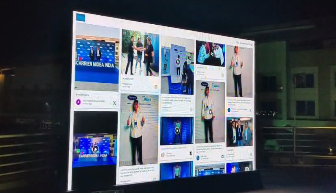 Live social feed display showcasing attendee posts, hashtags and event interactions in real time.