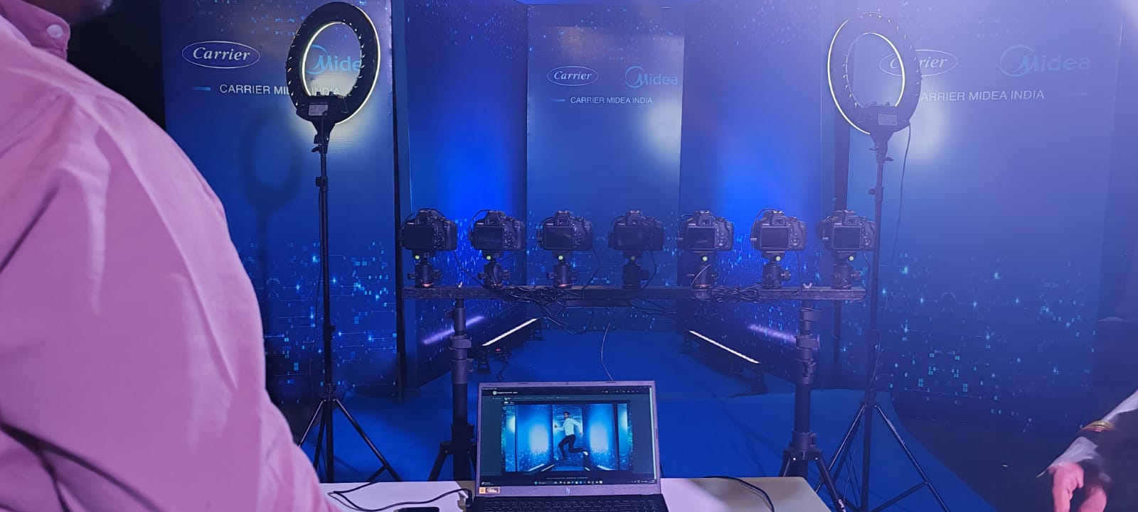 Bullet-time multi-camera capture creating dramatic 360Β° slow-motion branded event videos.